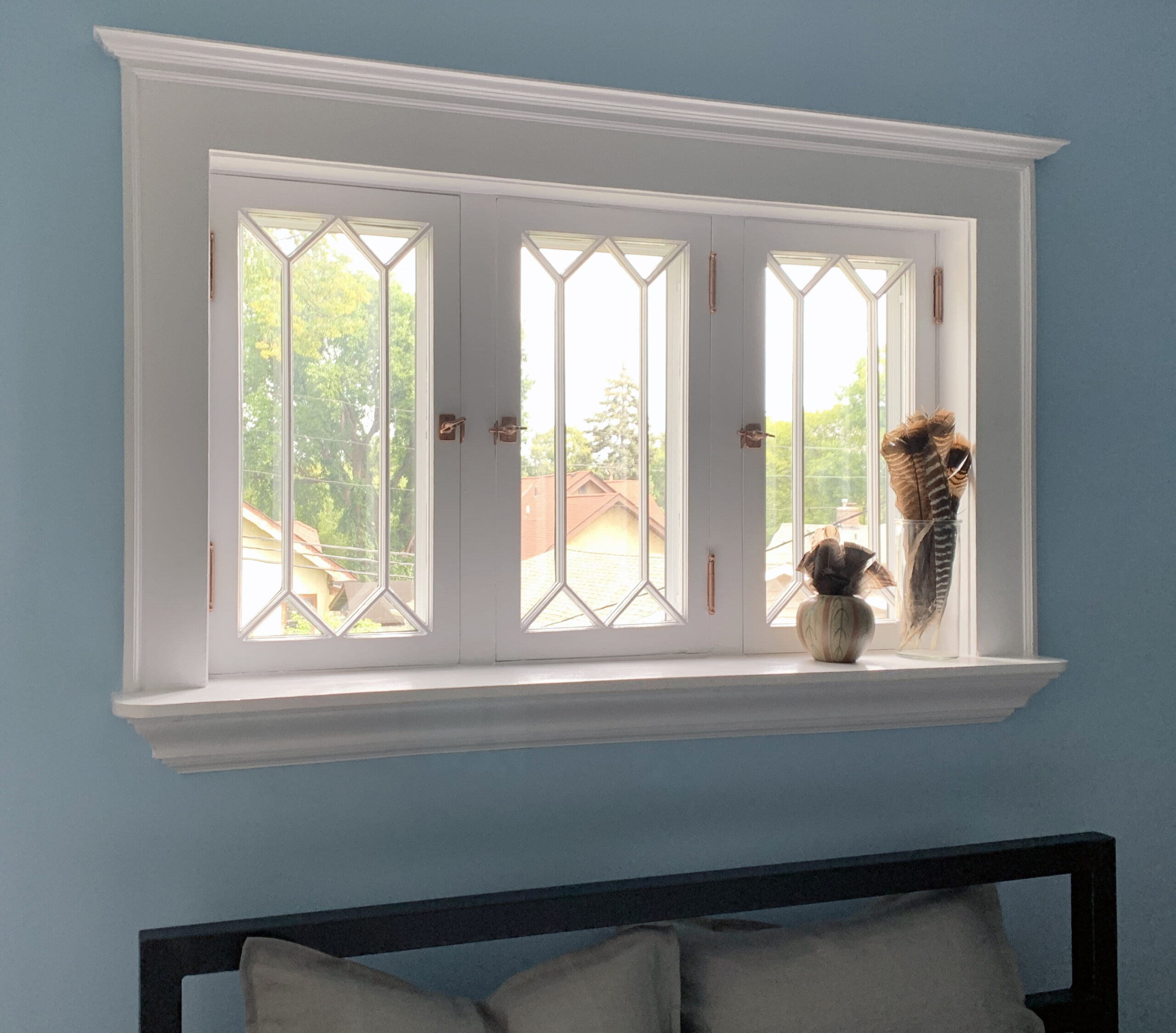 I finished the downstairs bedroom last week and it is beautiful. Chris and I are very pleased. Tremendous work: three coats on the ceiling, doors, baseboards and windows. Two coats on the sky-blue walls. Spray-painted copper on all of the window hinges, locks and pulls. New solar shades, bedspread, pillows and a new ceiling light/fan. Early this week I started prepping the dining room, which will be a much easier project.
