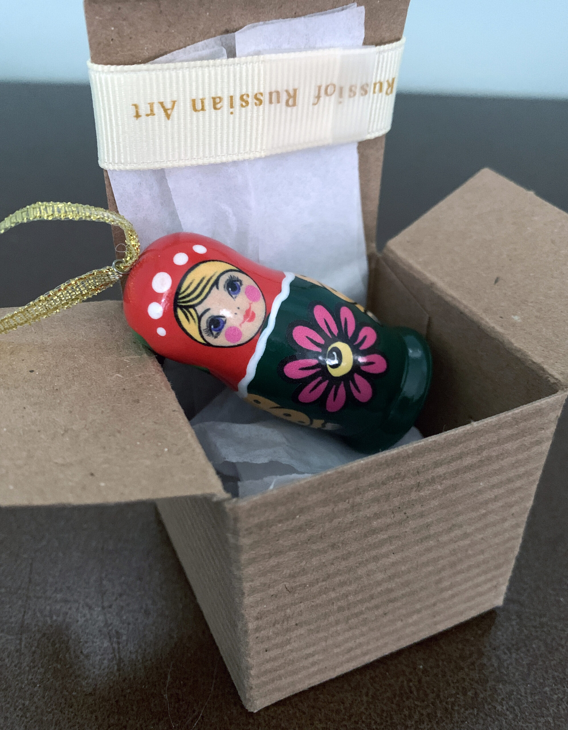 This morning I drove over to Cullan and Hillary’s to bring Oona to school. I spent about 20 minutes with my grandkids, viewing all the Christmas decorations they helped their mama put up. One was the photo of their passed-away kitty named Truck. The picture frame was surrounded by evergreens. They gave me a gift from The Museum of Russian Art, a little wooden doll for my Christmas tree.